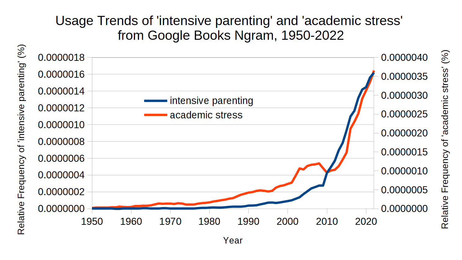 Figure 6 shows that the rise of intensive parenting was followed by an increase in academic stress, both of which surged after the 2008 financial crisis.